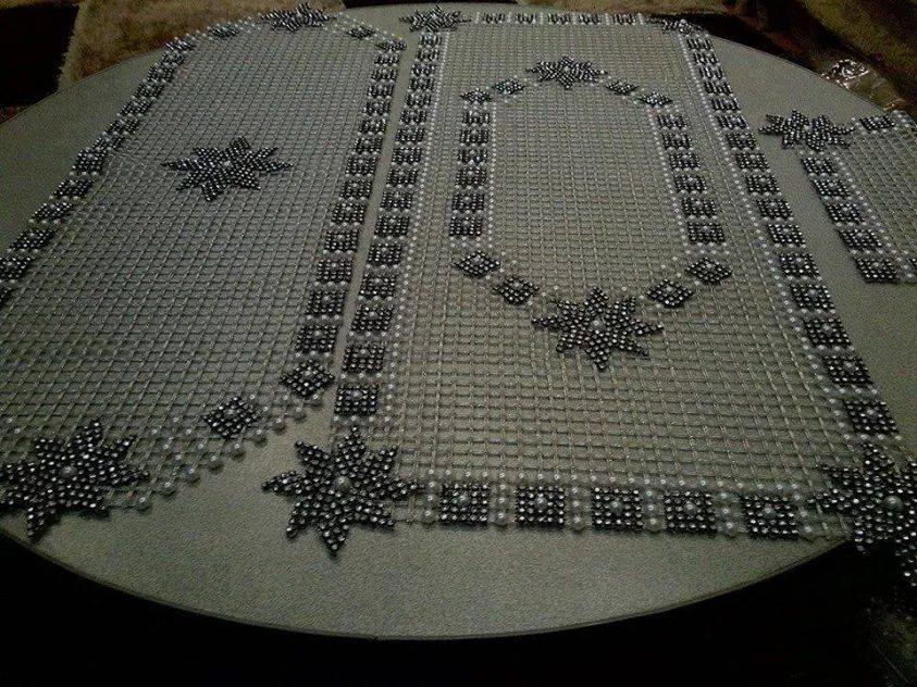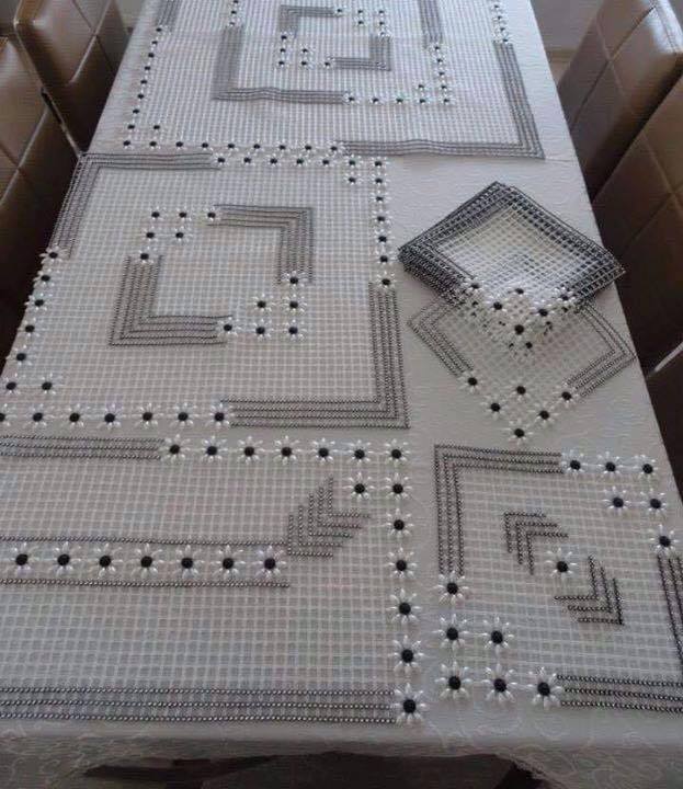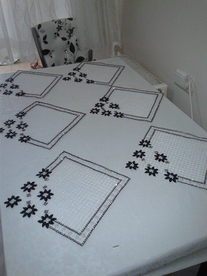 Kasnak işi salon takımları, sade birçok modelin yanında boncuk ile işlenen oldukça şaşalı modellerde bulunmaktadır. Genellikle gümüş rengi ya da altın sarısı iplerle yapılan kasnak işi salon takımı modelleri serildiğinde salonun havasını bir anda değiştirmektedir. Peçetelerini kullanmak istemeyenler kasnak işi salon takımı modellerinden birini seçerek yalnızca masa örtüsü olarak da yapılabilmektedir. Oldukça kullanışlı olan bu ürünler dayanıklılığıyla da yıllara meydan okumaktadır.